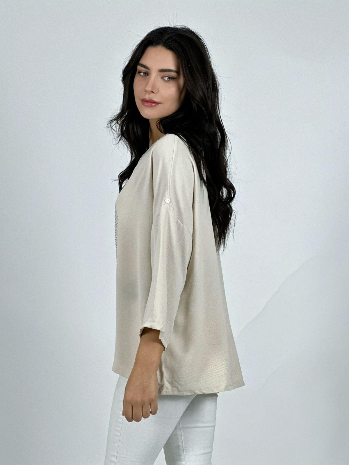 Características: Polera Lino Corazon Print Con Brillos