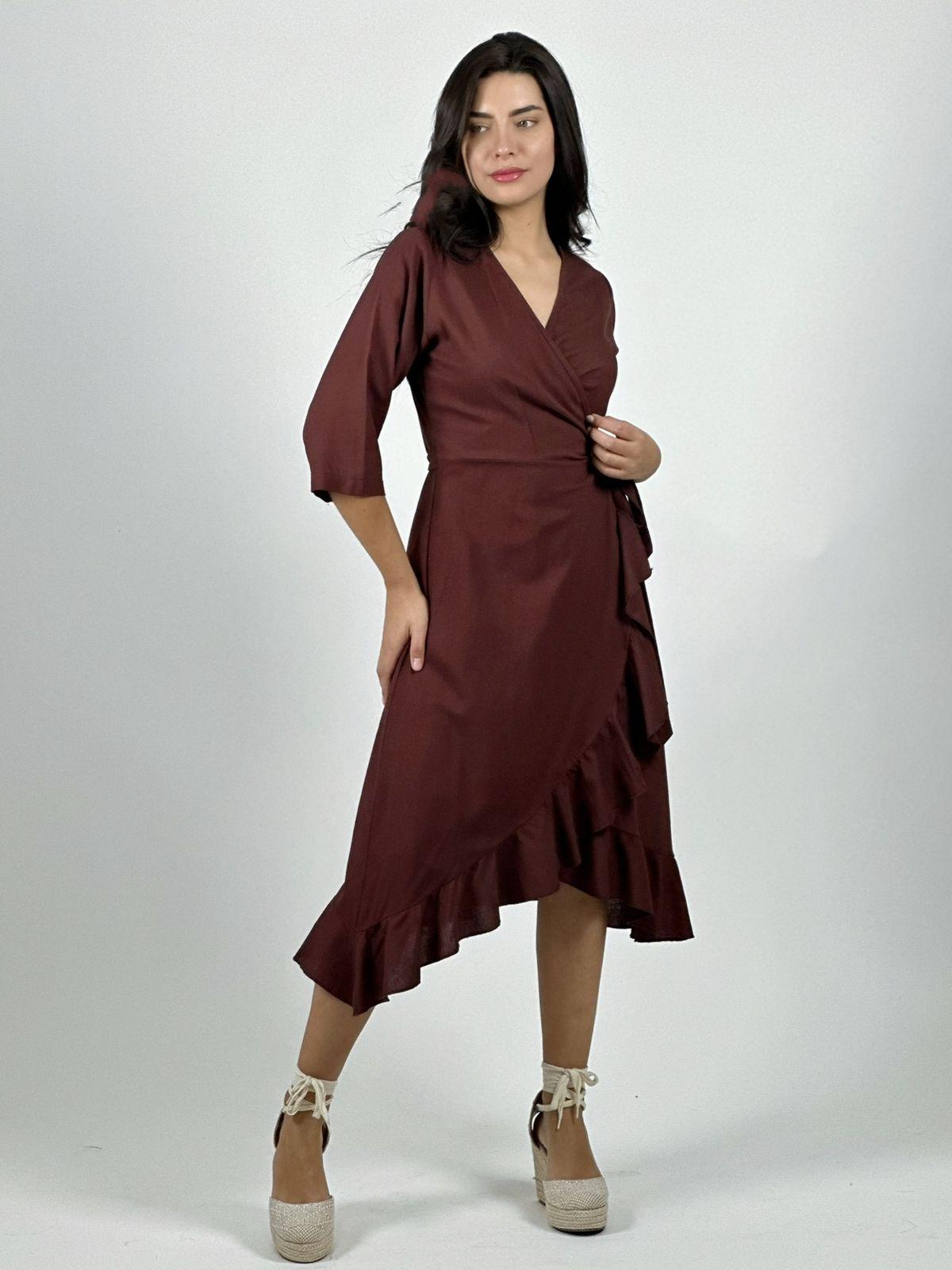 Características: Vestido Formal Lino Amarre Cruzado C/Vuelos