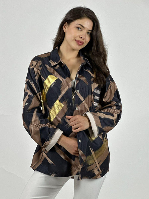 Sweater Spandex Letras Doradas Cuello V -