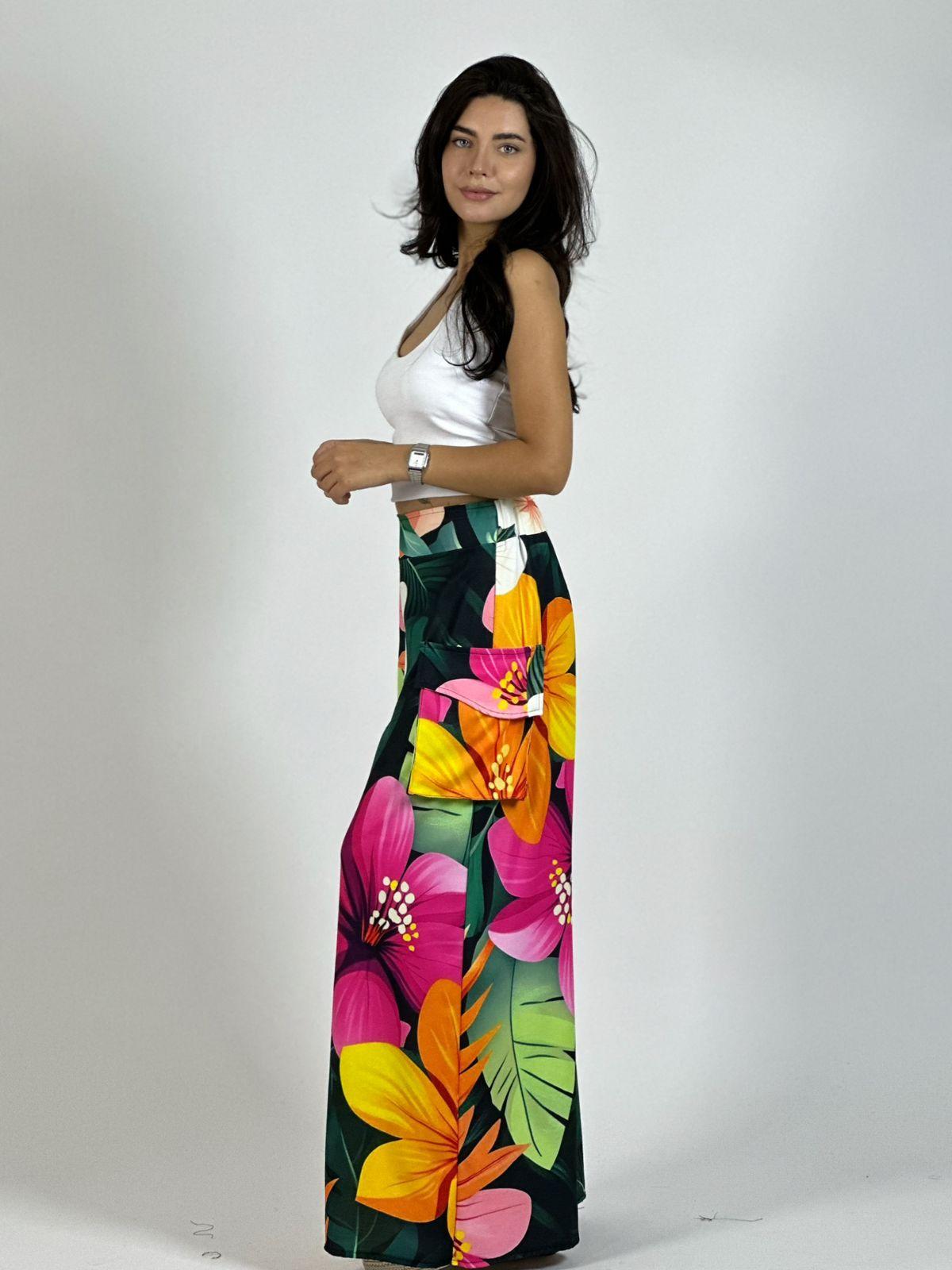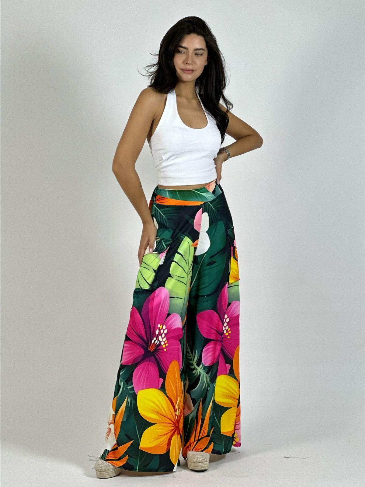 Palazzo Multifloral Bolsillos Cargo