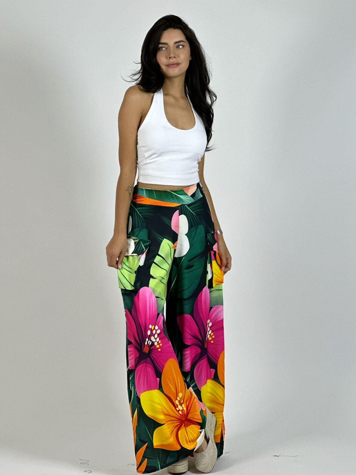 Características: Palazzo Viscosa Multifloral Bolsillos Cargo
