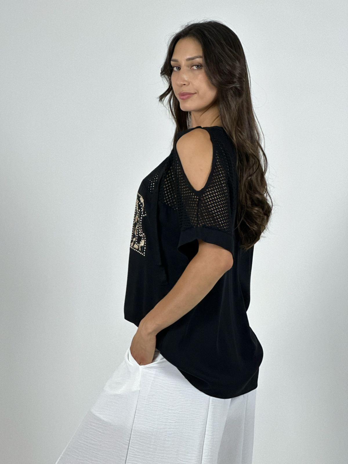 Características: Polera Lino Hombros Tejidos LOVE Print