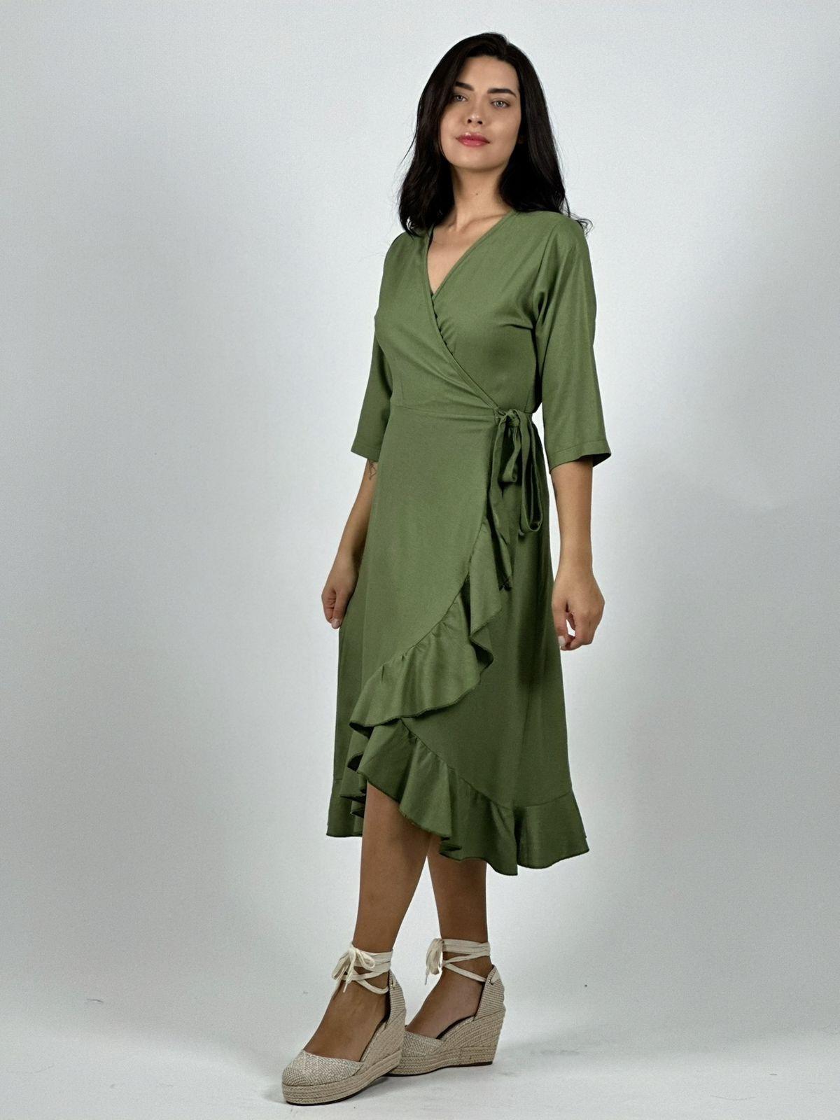 Vestido Lino Amarre Cruzado Con Vuelos